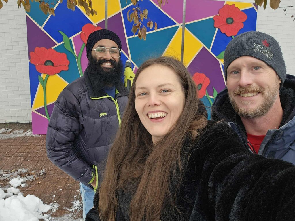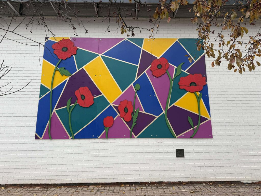 We mounted the mural on the Royal LePage building, and I want to take a moment to thank them deeply for giving these poppies a home. Their support made this whole project possible.